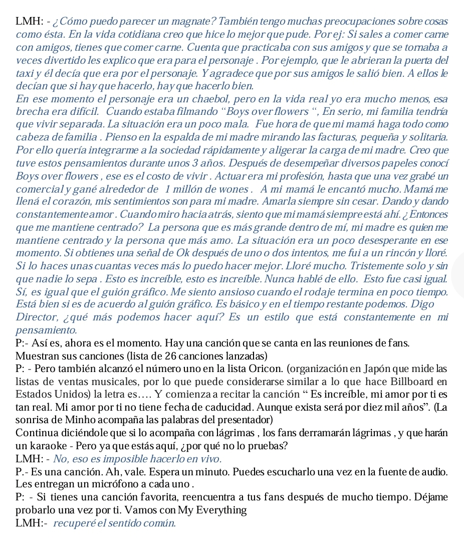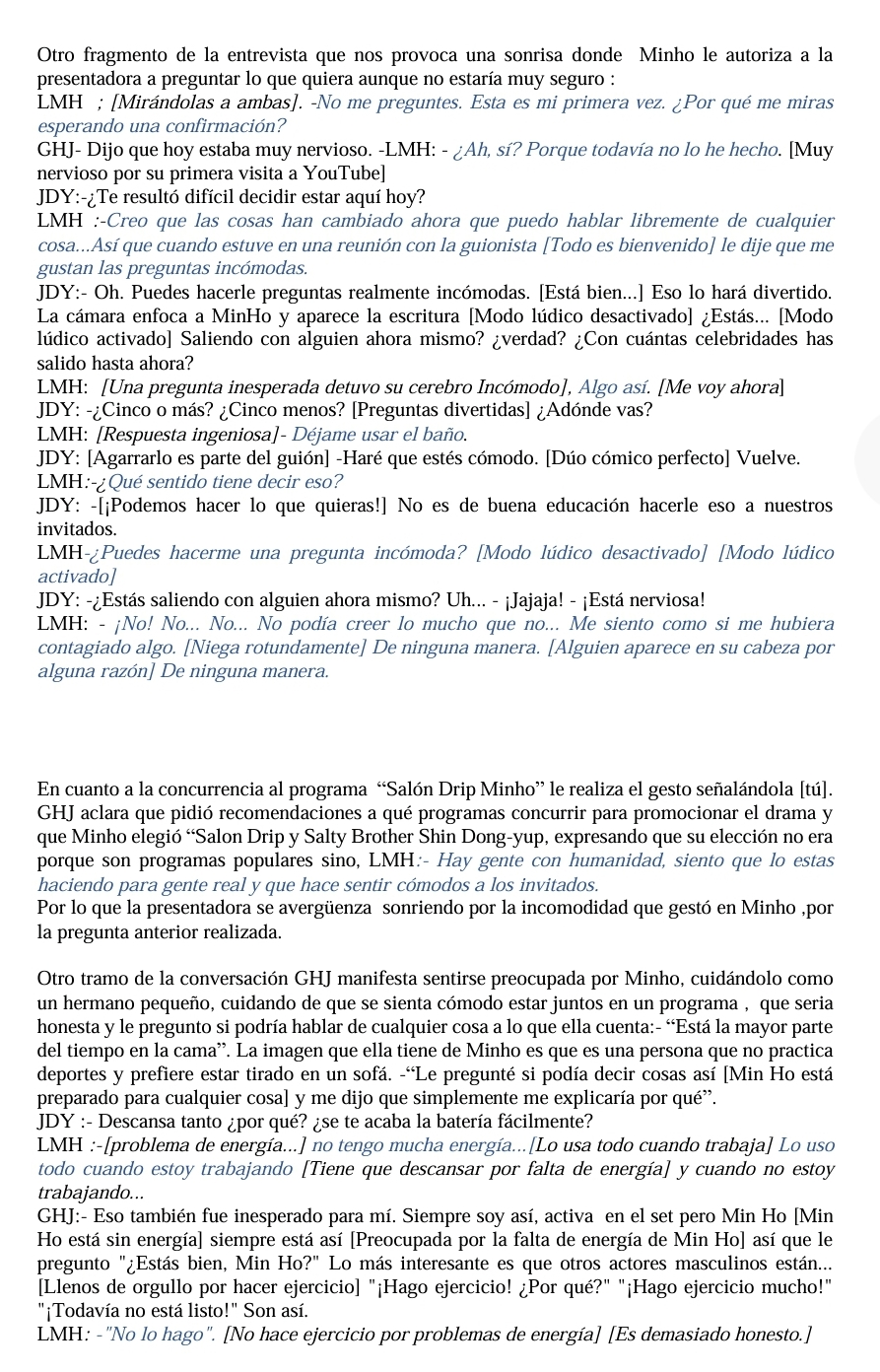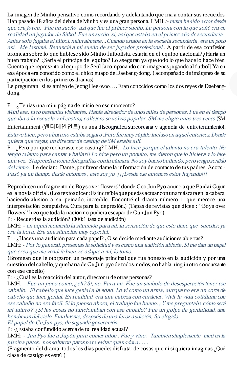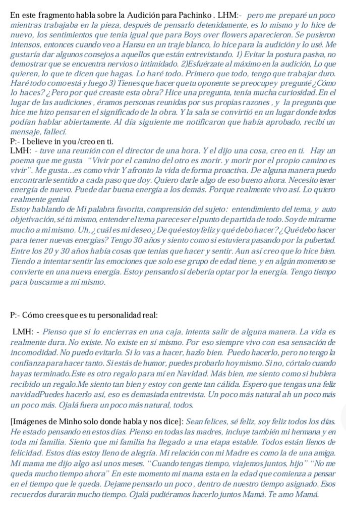 A continuación les compartimos para que disfruten igual que nosotras la traducción de las entrevistas y puedan disfrutar a Minho en su faceta tanto personal como laboral.