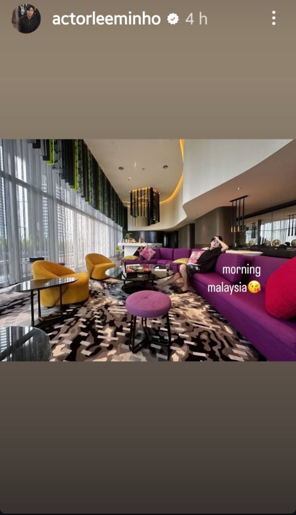 Al día siguiente nos comparte en Historias de su Instagram «Mañana Malasia😘» (Buen día Malasia😘) desde la Suite del W Hotel De Kuala Lumpur. Totalmente relajado y luciendo una mascarilla facial.