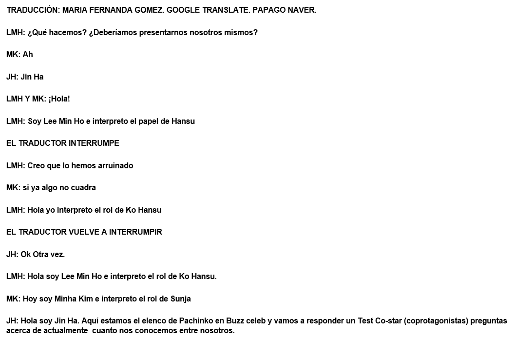 Transcribimos un fragmento realizada por la periodista argentina Sole Venesio para el medio OHLALÁ al elenco y a nuestro Lee Min Ho donde les menciona a sus fans argentinas!!!