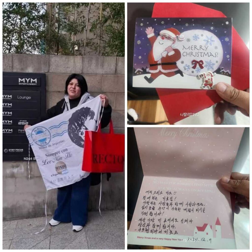 Navidad, es una de las festividades mas importante del mundo occidental como lo es también para Corea del Sur, entonces las Minoz de Argentina, quisimos hacerle llegar nuestra muestra de amor a Lee Min Ho a través de un obsequio (prenda de una reconocida marca coreana «Recto», una de sus preferidas) deseándole «Que sea muy feliz y se cumplan sus sueños».